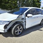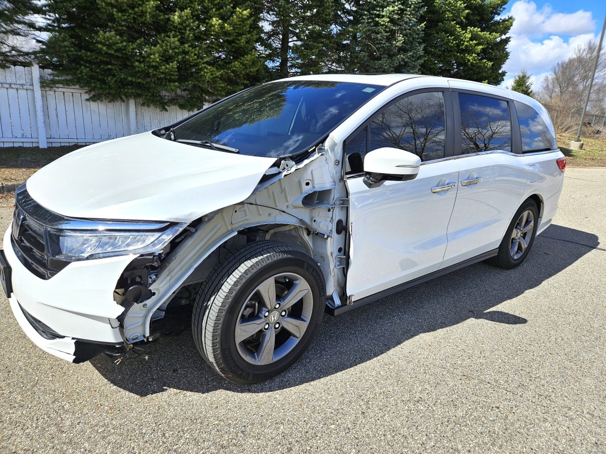Needs these major parts: LF tire (slight cut in tread), front bumper cover, L headlight, L fender, and LF door. Repair or replace hood (corner damage). The LF suspension has been replaced and an alignment has been completed. The driver’s knee airbag has been replaced. Good unibody frame, radiator support, LF upper rail, L cowl, coolers, glass, airbags, seatbelts, 3/4 tires, and suspension. Missing floormats. Easy fix.